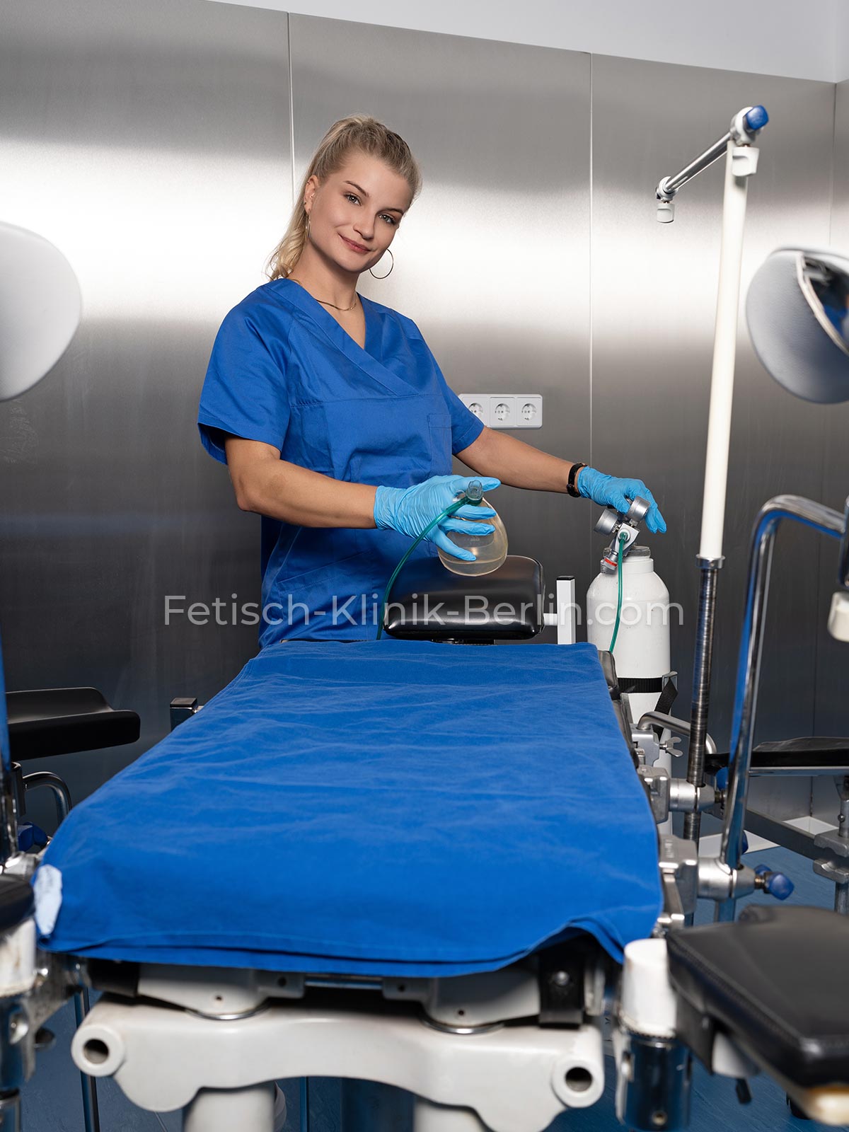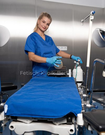 Trotz fehlender realmedizinischer Ausbildung bin ich dank der Schulung in unserer Fetischklinik in der Lage, nahezu alle gängigen Behandlungsmethoden durchzuführen – ausgenommen sind lediglich Zugänge und Blasenspülungen, da ich nur Einmalkatheter lege.